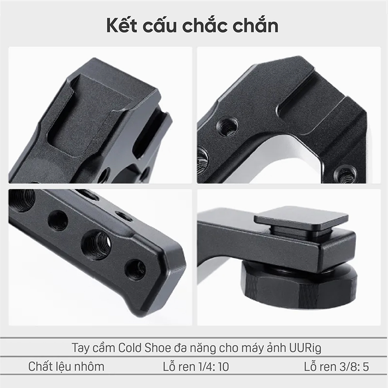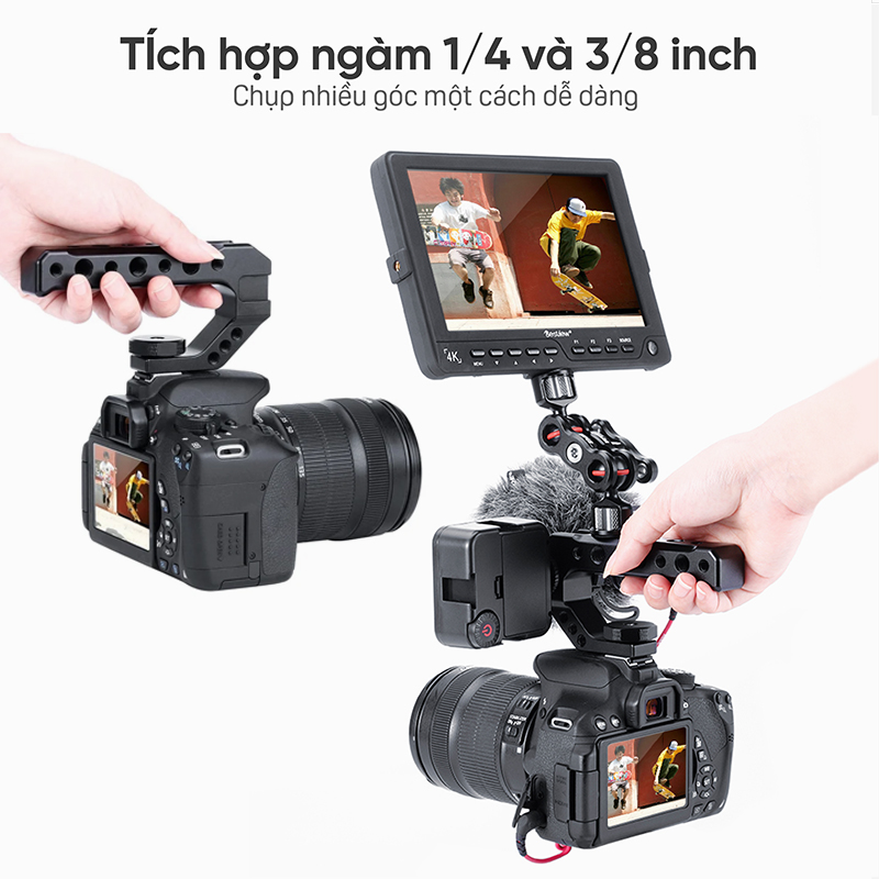 - Tùy chọn gắn kết phong phú hơn với việc tích hợp tất nhiều ngàm gắn 1/4 "3/8" cho các tùy chọn lắp đặt. Cho phép bạn chụp ảnh góc thấp và nhiều góc một cách dễ dàng. Bạn có thể lắp tay cầm về phía trước hoặc phía sau.
