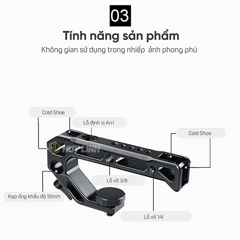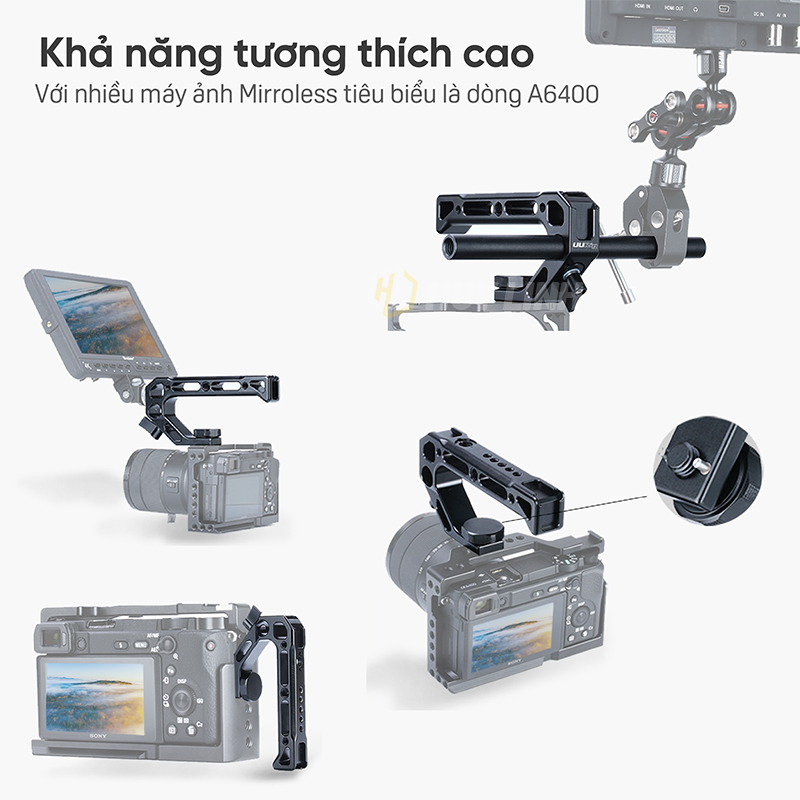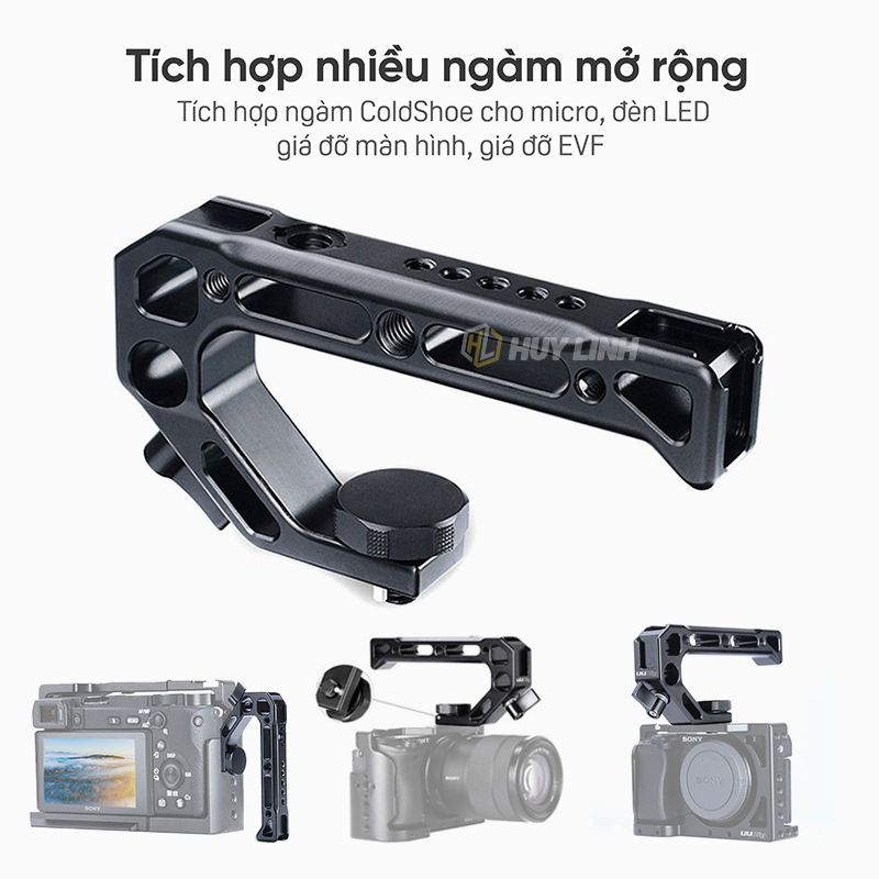 - Tay cầm thiết kế Handle On Top: cầm chụp tay gắn nhanh trực tiếp vào máy ảnh tạo ra các thướt phim hành động ấn tượng cho dân chuyên và bán chuyên nghiệp.