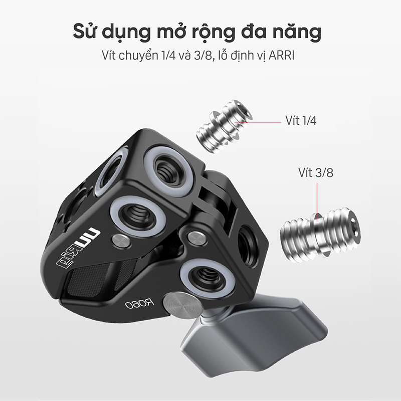 - Đi kèm với vít chuyển 1/4 và 3/8'' và Lỗ định vị ARRI để đáp ứng nhu cầu mở rộng.