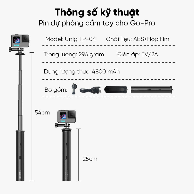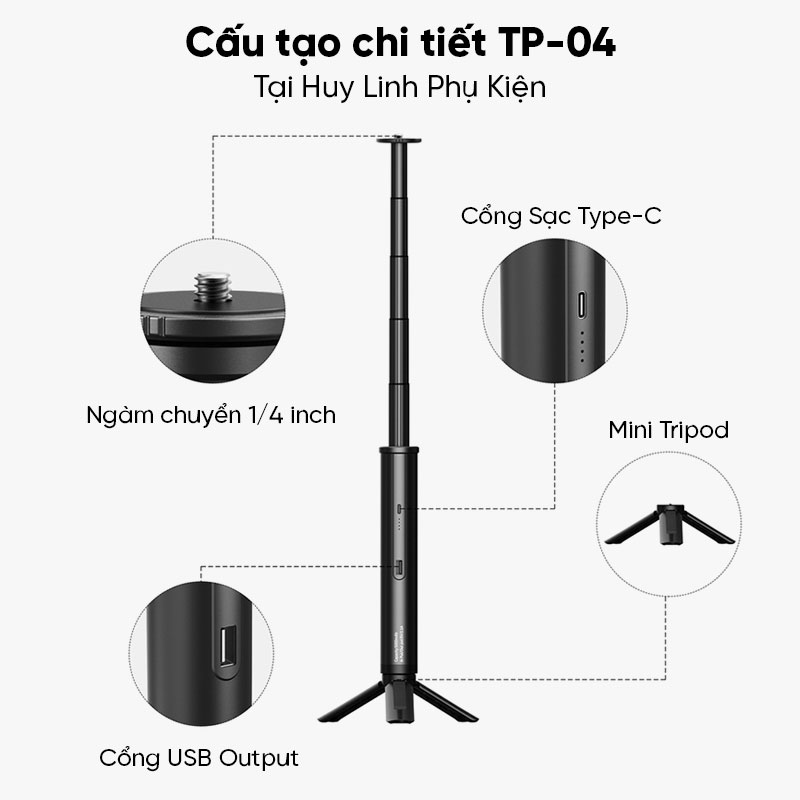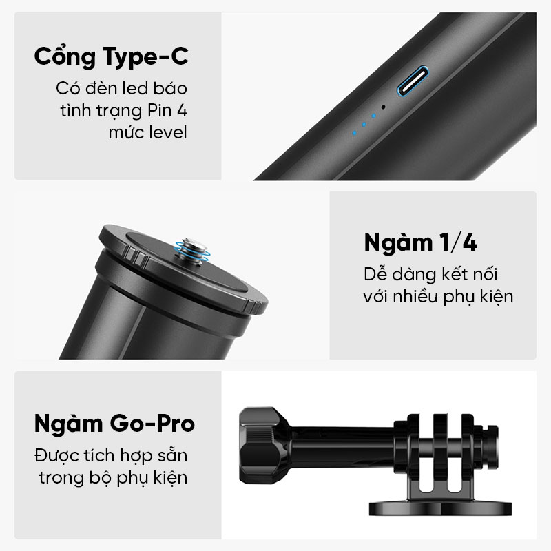 - Kết nối: Ren vít cái 1/4" (Dưới) / Ren vít nam 1/4" (Trên)