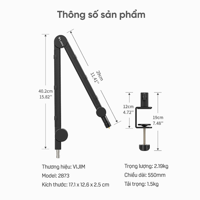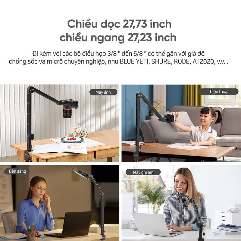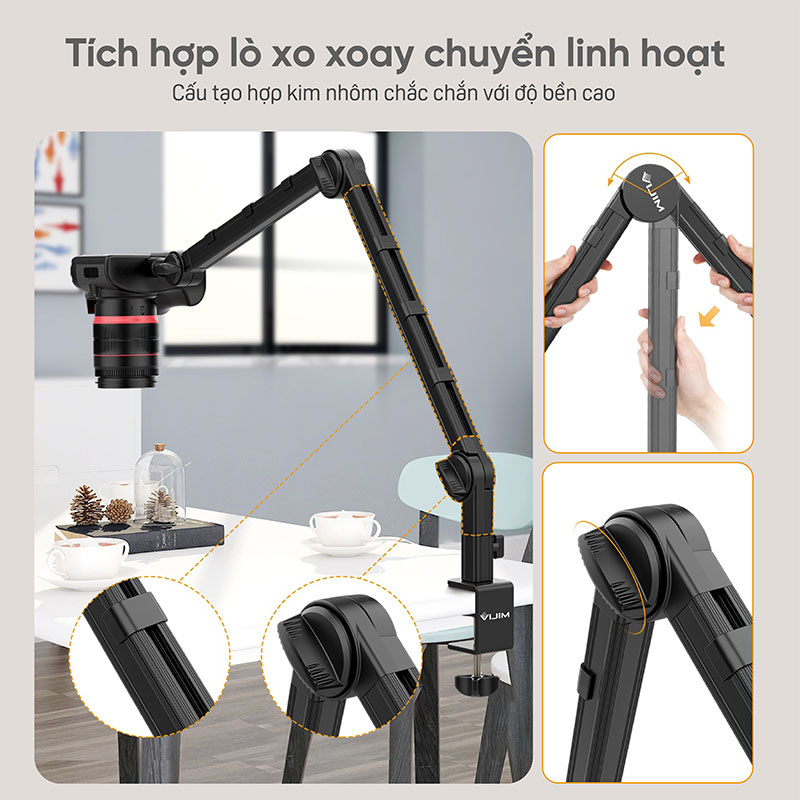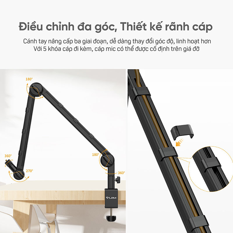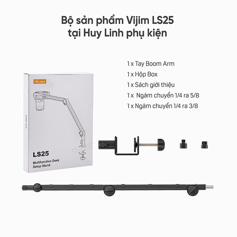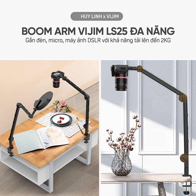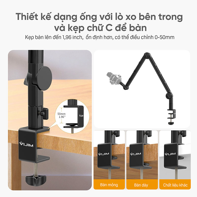 - Cánh tay Boom Microphone để Bàn Vijim LS25, thiết kế dạng ống với lò xo bên trong và kẹp chữ C để bàn. Thiết kế có thể xoay 360 ° sẽ mang đến cho bạn trải nghiệm góc và vị trí phù hợp.