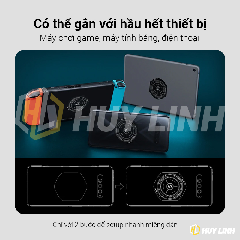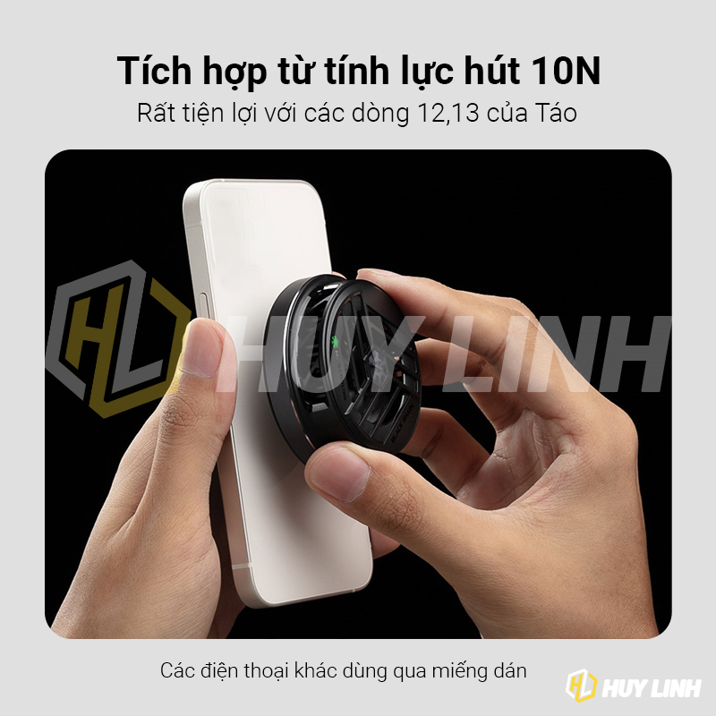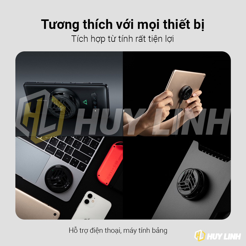 - Thiết kế này phát huy tác dụng vượt trội trong các tình huống sử dụng. Thứ nhất, giúp thao tác dán vào mặt lưng các thiết bị nhanh chóng và đơn giản hơn. Thứ hai, tương thích với “tất cả” các thiết bị có bề mặt phẳng. Thứ ba, tối ưu kích thước của quạt tản nhiệt trở nên nhỏ và nhẹ nhất thế giới. Không bị cấn tay khi chơi game hay đè lên các nút chức năng bên hông điện thoại.