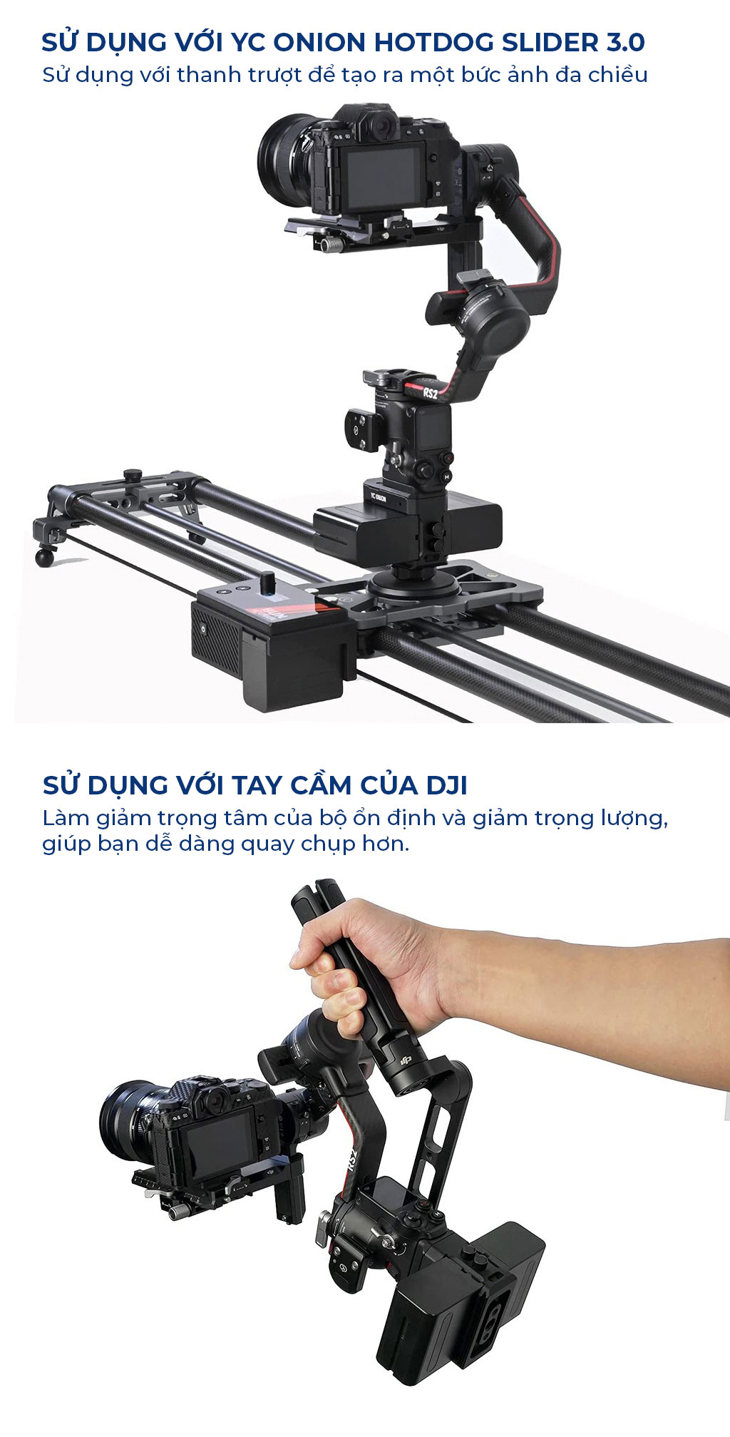 - Khả năng tương thích: Gimbal DJI RS2 / RS3Pro / RS4 / RS4Pro