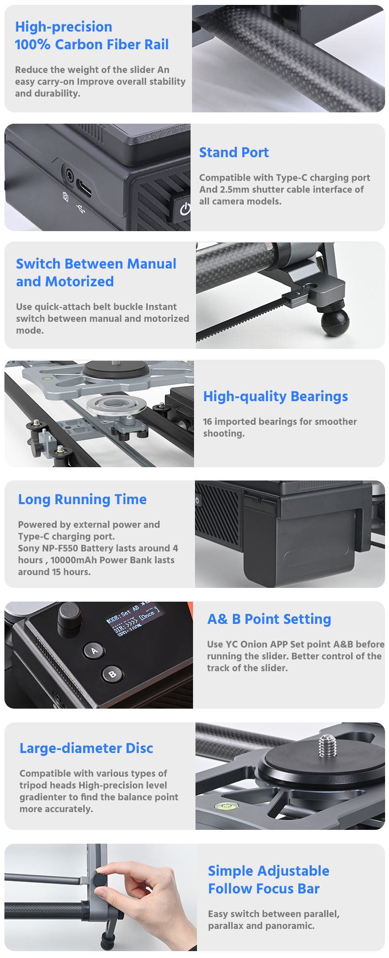 - Hỗ trợ pin Sony F550/F750/F950