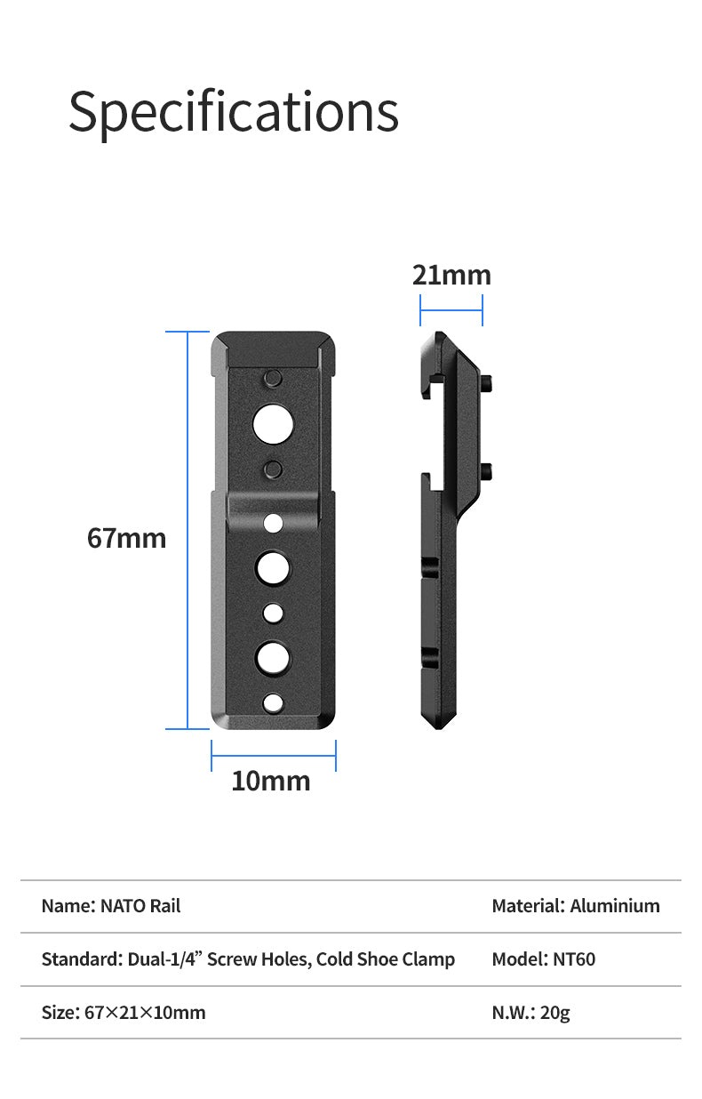 - Ngàm: 2 ngàm 1/4'', Cold shoe
