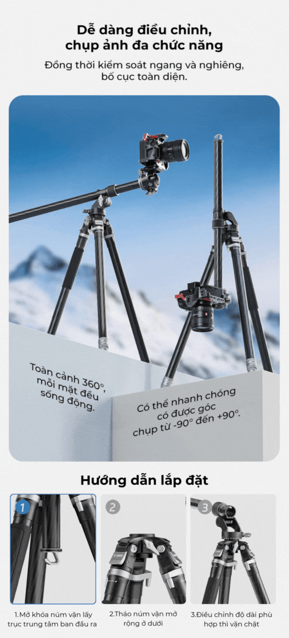 - Góc lên xuống: 180 độ