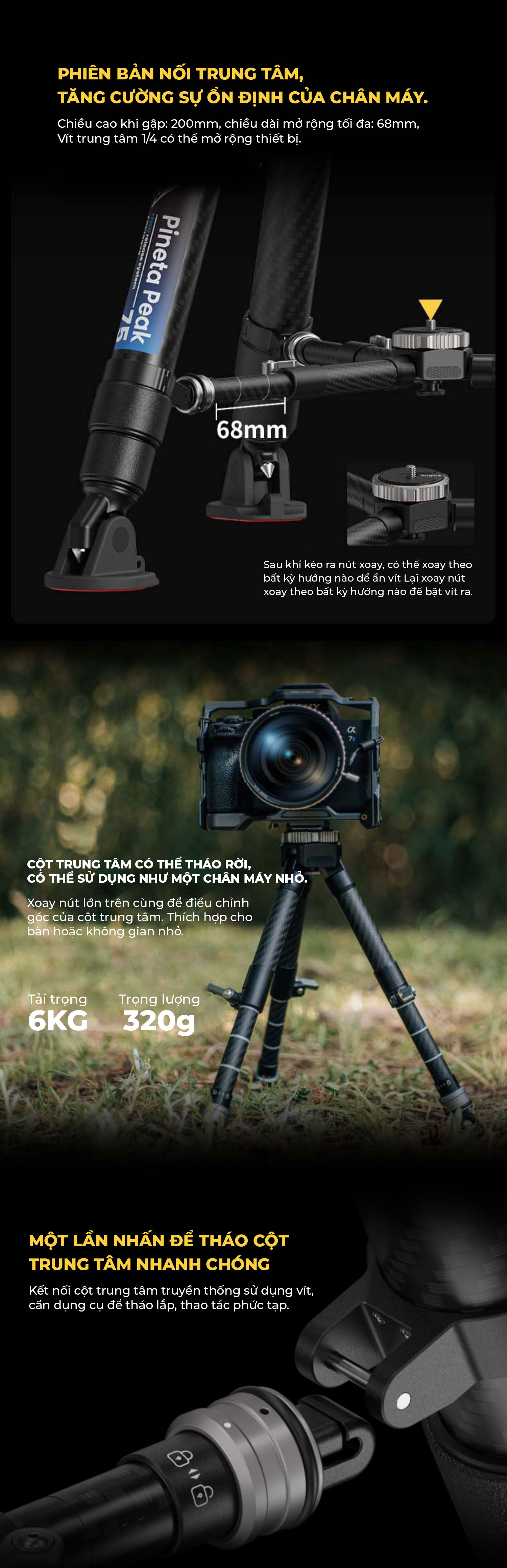 - Thiết lập hệ thống chân máy quay chụp một cách nhanh chóng và dễ dàng.