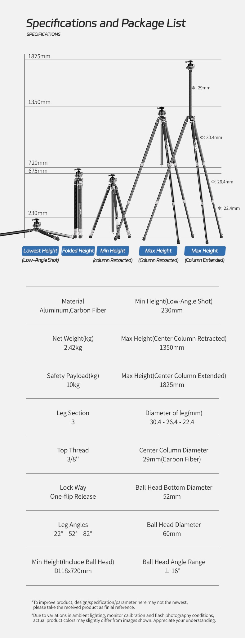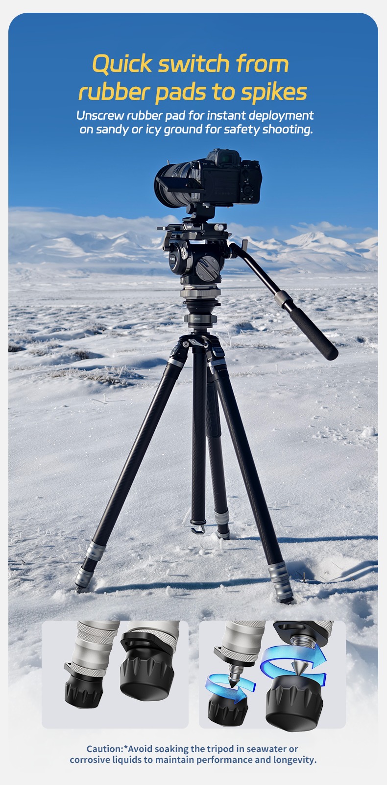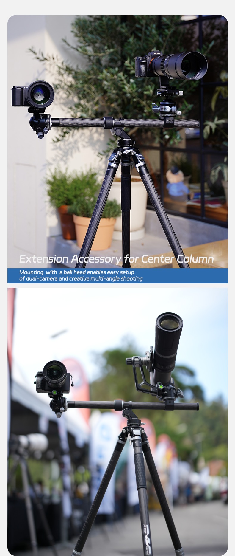 - Được cấu tạo từ chất liệu carbon fiber giúp trọng lượng nhẹ nhưng tải lên tới 8kg có thể dùng cho mọi loại máy quay trên thị trường