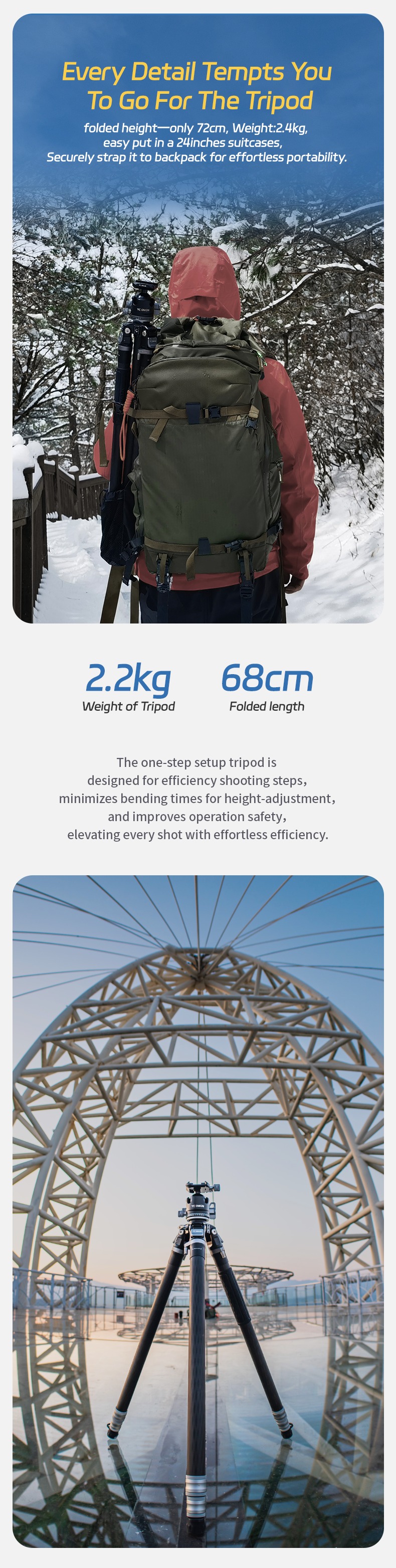 - Thiết kế tháo lắp nhanh single lock tiện lợi, thu - mở chân máy với chỉ 1 thao tác