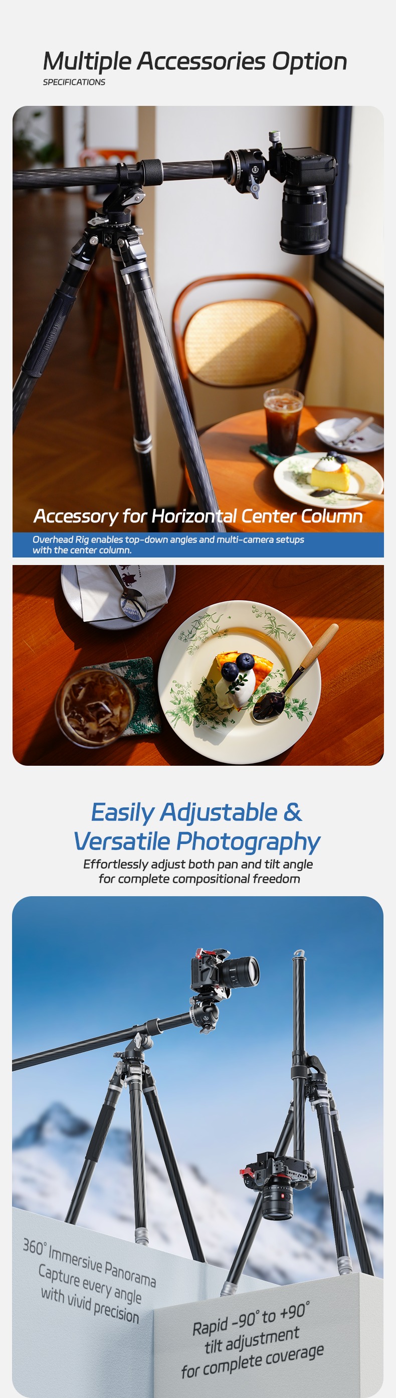 - Tích hợp đế bát góc nghiêng 16 độ cùng đầu ballhead xoay 360 độ có thể tùy chỉnh góc máy một cách tối ưu nhất.
