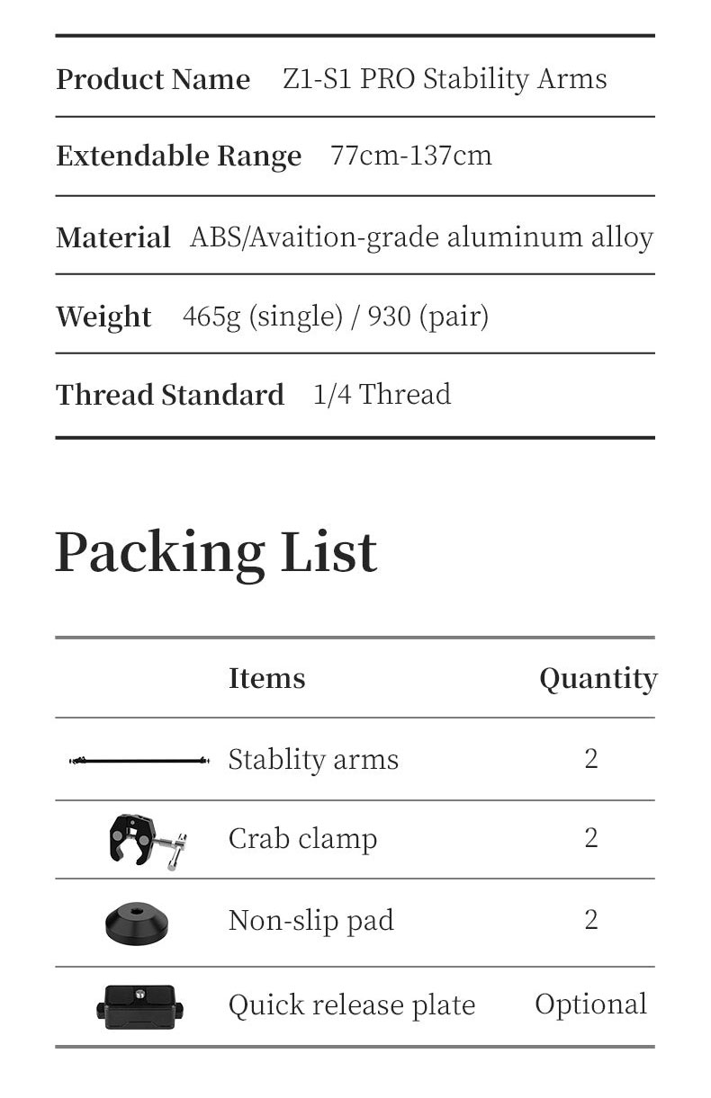 - 2 x Tay arm ổn định YC Onion Z1S1 Pro