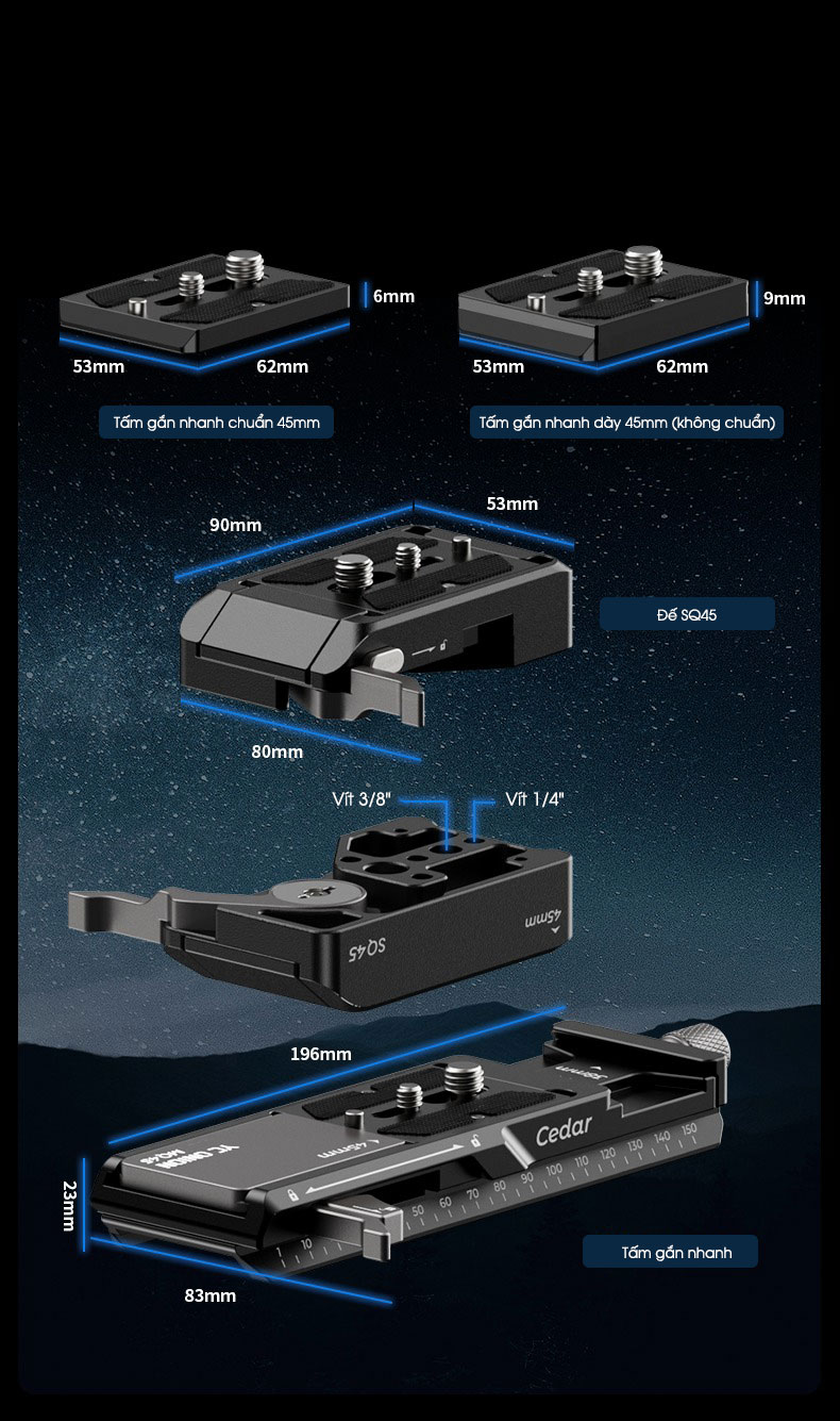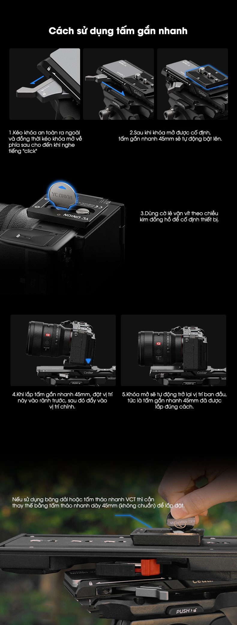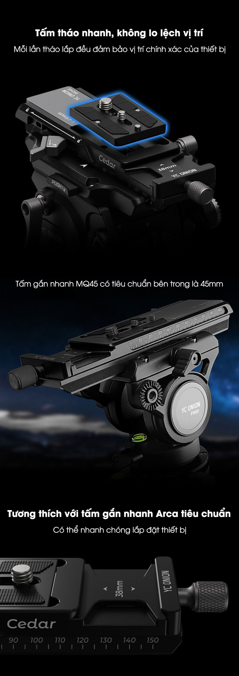 * Lưu Ý: Bộ Kit Cedar MQ45 sử dụng với tất cả Tripod từ YC Onion như: Pineta Peak, YC Onion Tako,...