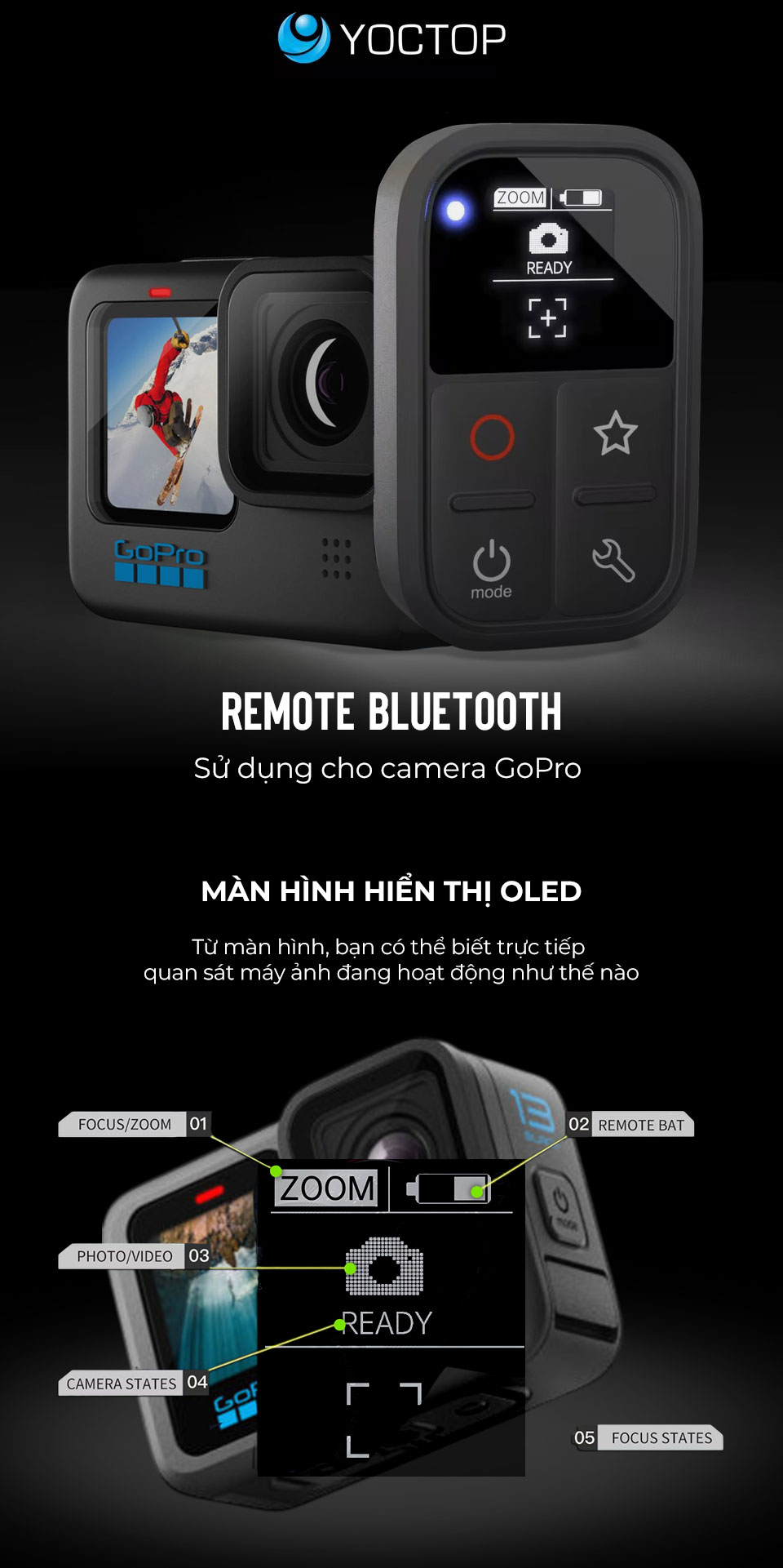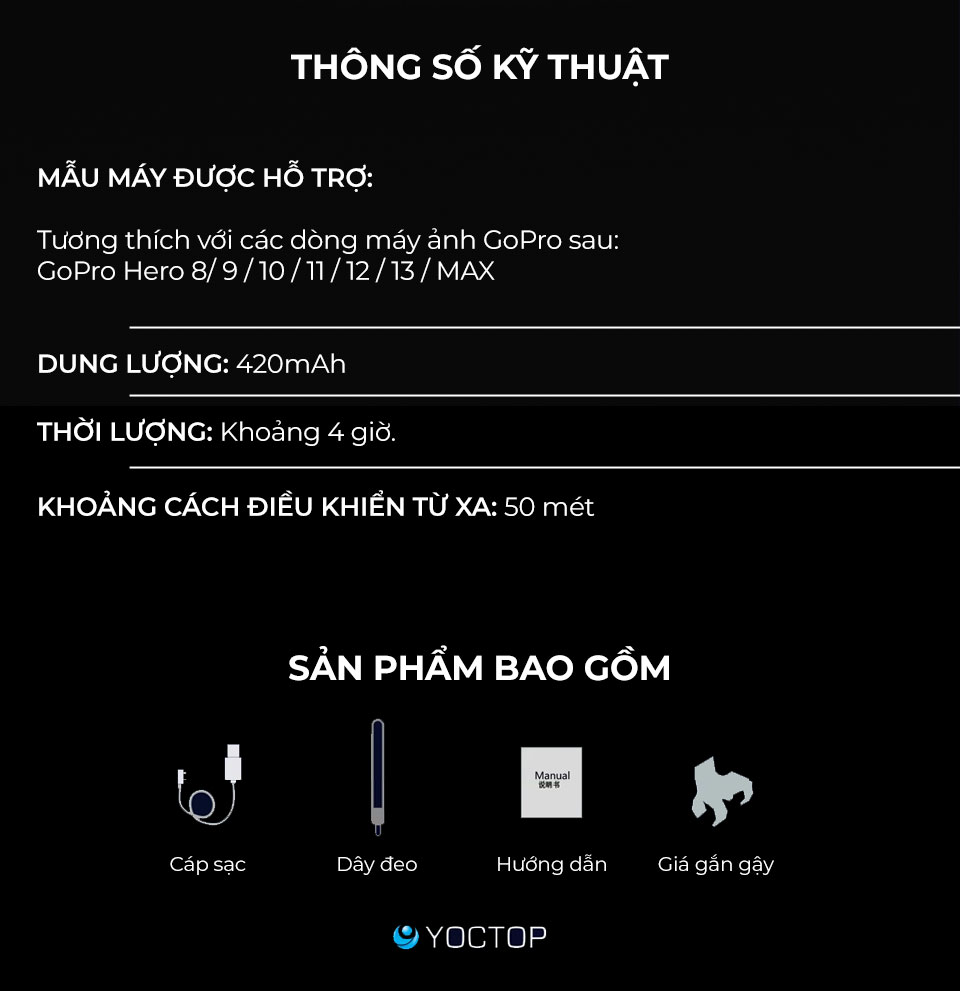 - Remote sử dụng cho: GoPro 8/9/10/11/12/13/ Gopro Max,Không hỗ trợ 7/6/5/4/3